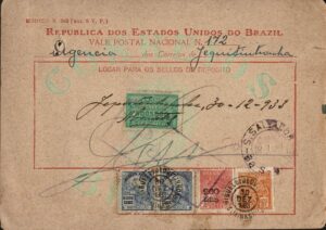 DESCRIÇÃO:Anos 1938 e 1939 - 2 Vales no valor de 500$000, sendo 1 deles só com 1 selo (circulado dentro da Bahia)...