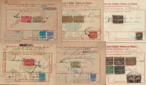 DESCRIÇÃO:SOROCABA (SP) Anos 1913 a 1937 - Lote com 6 Vales Postais, sendo 4 deles com DIFERENTES carimbos da Adm. dos Correios....