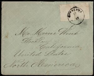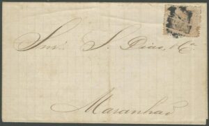 DESCRIÇÃO:Ano 1884 - Sobrecarta circulada de ? para o Maranhão. Selo 58, com carimbo mudo ilegível - 560 UF...