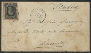 DESCRIÇÃO:História Postal - Ano 1880 - Envelope circulado de S. João do Rio Claro para a Italia, com carimbos de trânsito chegada....