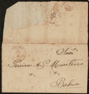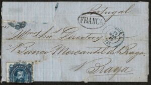 DESCRIÇÃO:Ano 1876 - Sobrecarta completa circulada da Bahia (carimbo tipo francês, em azul) para Braga (Portugal) com chegada. Carimbo P. Transatlantico no...