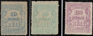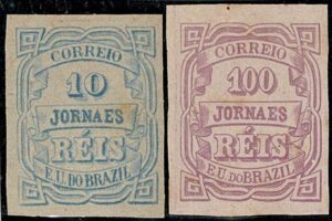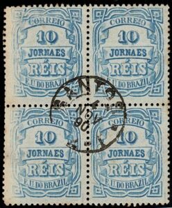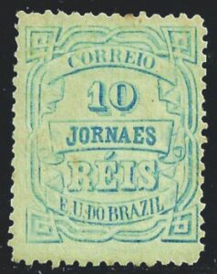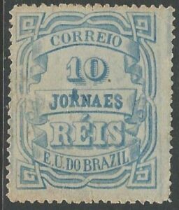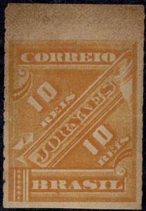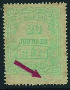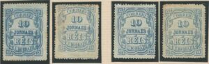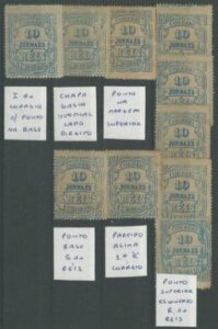 DESCRIÇÃO:(*) 19D - 10Rs - Variedade: Ponto azul sobre a letra R de Jornaes. Selo tipo cota 270 UF...