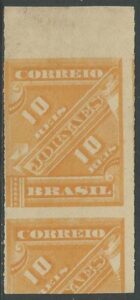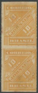 DESCRIÇÃO:(*) 1SPH - 10Rs - Par vertical, com ferrugem acentuada e claro no selo inferior. Falta total do corte horizontal - 600...