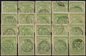 DESCRIÇÃO:◉ 11 - 20Rs - Lote com 20 selos, todos com o mesmo carimbo, da cidade de Vassouras (RJ) maioria com data...