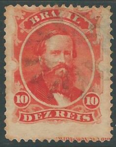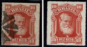DESCRIÇÃO:◉/(*) 37L - 10Rs - 2 selos: lado direito (usado) e lado esquerdo (novo sem goma, passando sobre o percê esquerdo) -...