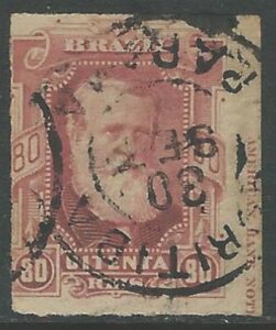 DESCRIÇÃO:* 26L - 80Rs - Possível goma original. Inglês esquerda decalque ligeiramente deslocado. Combinação não catalogada - 550 UF só a legenda....