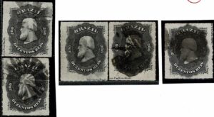 DESCRIÇÃO:◉ 38L - 20Rs - 2 selos com legenda inferior fazendo 100% dela - 300 UF...