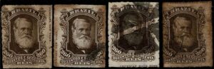 DESCRIÇÃO:◉ 41L - 100Rs - Lote com 5 legendas: Superior x 4 (2 selos com senão na qualidade) e lado direito (também...