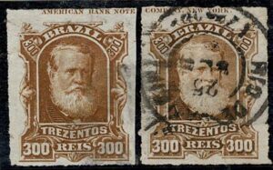 DESCRIÇÃO:◉ 44L - 300Rs - 2 selos com legenda superior fazendo 100% dela - 180 UF....