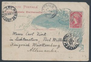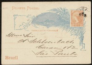 DESCRIÇÃO:35 - 80Rs - Ano 1892 - Circulado de São Paulo para a Alemanha, com 3 diferentes carimbos de transito - 240UF...