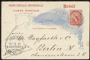 DESCRIÇÃO:39 - Ano 1895 - 80Rs - Circulado do Rio de Janeiro para a Alemanha, com chegada. Vinco em 3 cantos -...