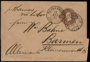DESCRIÇÃO:3 - 60Rs - Ano 1891 - Circulada de Pernambuco (duplo carimbo frontal) para a Alemanha - 450 UF = /- R$...