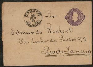 DESCRIÇÃO:1 - 20Rs - Ano 1894 - Circulada dentro do Rio de Janeiro, com chegada - 450UF = /- R$ 2.500....