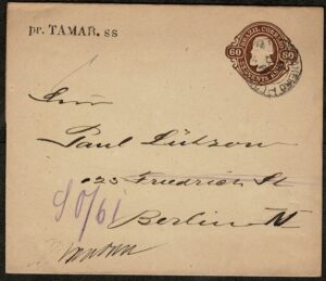 DESCRIÇÃO:6 - 60Rs - Ano 1891 ? - Circulada do Rio de Janeiro para a Alemanha. Indicação pelo "S.S.Tamar" - 180 UF...