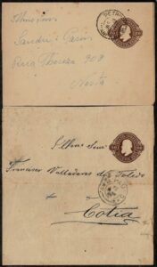 DESCRIÇÃO:6 - 60Rs - 2 peças circuladas: de São Paulo para Cotia - Ano ? e aparentemente dentro da cidade de Petrópolis...