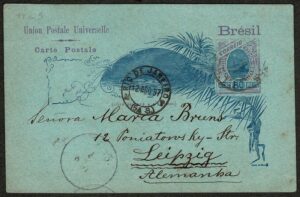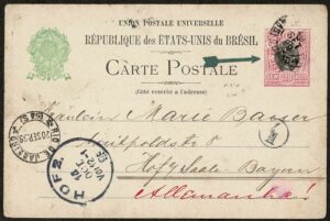 DESCRIÇÃO:50m4 - Ano 1898 - 80Rs selo Madrugada de 20Rs (danificado) circulado de ? para a Alemanha, com chegada. Forte vinco central...