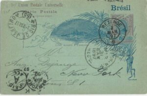 DESCRIÇÃO:52P - Ano 1897 - 80Rs - Circulado de Resende (RJ) para os Estados Unidos, com carimbo de trânsito chegada - 290...