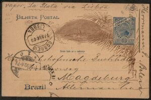 DESCRIÇÃO:53C - 50Rs - Ano 1900 - Circulado de Belém (sem carimbo de saída) para a Alemanha, com trânsito em Portugal +...