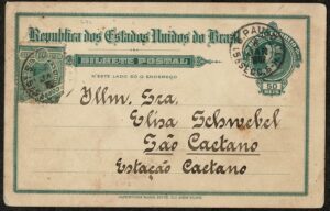 DESCRIÇÃO:BP67L (sem pauta no verso) Ano 1907 - 50Rs selo Madrugada 50Rs verde, circulado de São Paulo para São Caetano - 400UF.....