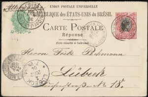 DESCRIÇÃO:61R - 100Rs - Parte da Resposta - Ano 1904 - Circulado de Nova Hamburgo para a Alemanha, com carimbos de transito...