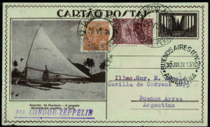 DESCRIÇÃO:112 - Ano 1934 - Mato Grosso (Corumbá) selo Varig V50, sem endereçamento, mas aparentemente circulou. Carimbo frontal de Porto Alegre (22.6)...