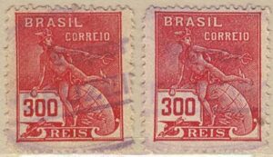 DESCRIÇÃO:◉ 2 selos vovó 300Rs Mercúrio com carimbo do Vapor "Cruzeiro"....