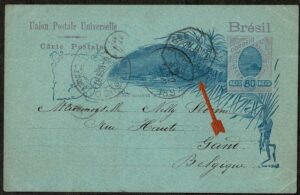 DESCRIÇÃO:Ano 1897 - Inteiro Postal tipo BP (80Rs) circulado de Pernambuco para a Bélgica, com chegada. Carimbo frontal do Paquebot : Ligne...