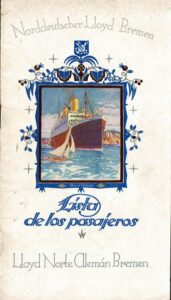 DESCRIÇÃO:Ano 1927 - Lista de passageiros do navio “Weser” da empresa : Norddeutscher Lloyd Bremen, referente a viagem de Buenos Aires para...