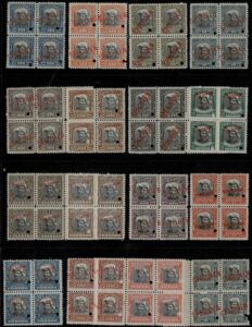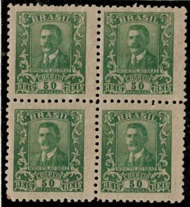 DESCRIÇÃO:** 30/34 - Wenceslau Braz - Série completa em quadras. Apenas 1 selo na quadra do 500 Réis com marca de charneira...