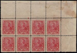 DESCRIÇÃO:**/* 32/32Es - 100Rs Wenceslau Braz - Bloco de 8, canto superior de folha, ficando 2 selos sem filigrana.......