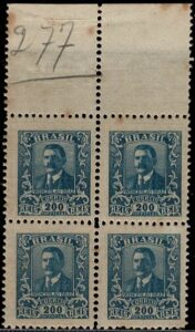 DESCRIÇÃO:**/* 33Es - 200Rs Wenceslau Braz - Quadra margem superior de folha, sem filigrana nos 4 selos.....