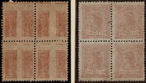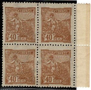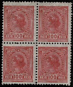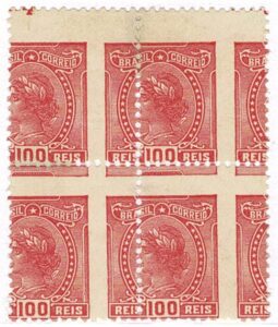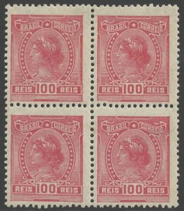 DESCRIÇÃO:* 165/165Es - 100Rs - Rara quadra, ficando os selos da esquerda, SEM FILIGRANA e os da direita, filigranados. Não catalogado neste...