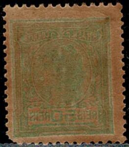 DESCRIÇÃO:* 157 - 50Rs sem filigrana - Variedade: transparência/decalque total. Falta 1 picote no canto inferior e minima gordura central. Selo tipo...