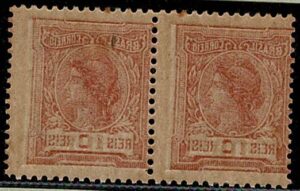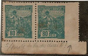 DESCRIÇÃO:* 179 - 80Rs Agricultura - Par horizontal , margem de folha, com grande distância no picote vertical lateral direito....