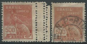 DESCRIÇÃO:* 161/161Es - 10Rs - Par horizontal, com e sem filigrana decalque/Transparência total. Selo isolado é cotado em 800 UF (Cerca de...