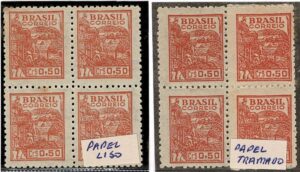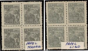 DESCRIÇÃO:** 467 - 0,50 Trigo - 2 quadras, uma ** e a outra com 3 selos **, uma em papel liso e...