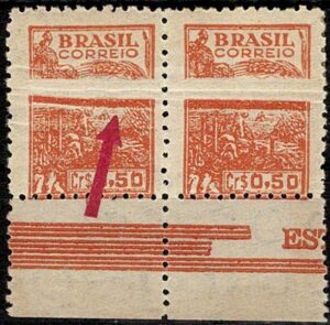 DESCRIÇÃO:**/* 467 - 0,50 Trigo - Par horizontal, margem inferior de folha e com super marcante pliê atravessando os 2 selos....