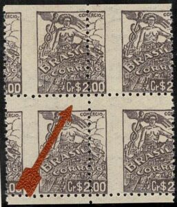 DESCRIÇÃO:◉ 474 - 10,00 Cde Porto Alegre - Quadra, com grande deslocamento do picote horizontal e visível do vertical. Pouco comum de...