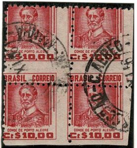 DESCRIÇÃO:*/** 474 - 10,00 Cde Porto Alegre - Quadra, 3 selos * e 1 ** - 440 UF ....