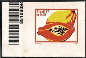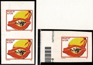 DESCRIÇÃO:** (751SD) - 0,05 Mamão - Par vertical, sem picote (sem o corte de destaque dos selos)....