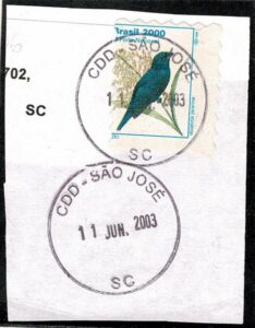 DESCRIÇÃO:◉ 776 - Tiziu 2000 - Sobre fragmento com carimbo do ano 2003 e com grande deslocamento do percê vertical...