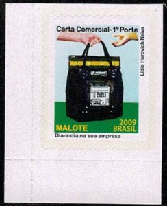 DESCRIÇÃO:** 849 - 1º Porte - Malote - Selo canto inferior de folha, com falta do corte de destaque do selo....