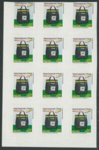 DESCRIÇÃO:** 849 - 1º Porte - Malote - Bloco de 12selos (3x4) vertical com enorme deslocamento do corte de destaque dos selos...