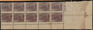 DESCRIÇÃO:◉ 241 - 10$000 Instrucção - Bloco de 30 selos (3x10) horizontal. Carimbo circular...