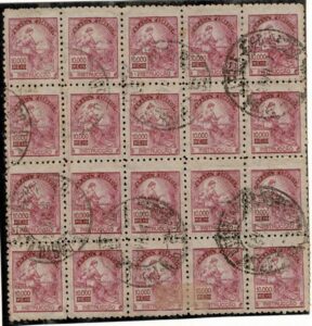 DESCRIÇÃO:◉ 241A - 10$000 Instrucção - Bloco de 20 (5x4) com carimbo ilegível...