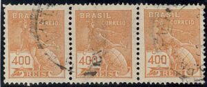 DESCRIÇÃO:◉ 247/247Es - 400Rs - Trinca horizontal, ficando o selo do meio sem filigrana....