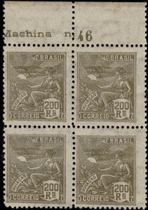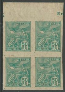 DESCRIÇÃO:** 249/249ES - 600Rs Mercúrio - Quadra ** !! margem superior de folha, ficando 2 selos com e 2 SEM FILIGRANA -...