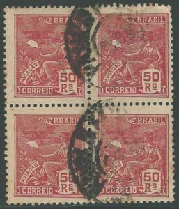 DESCRIÇÃO:◉ 263 - 50Rs Aviação, filigrana Acróstica - Quadra usada. Pouco usual - 2.800 UF...