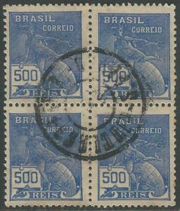 DESCRIÇÃO:*/** 258 - 500Rs Mercúrio - Filigrana H - Quadra - Selo da posição 4 com picote irregular - 180 UF =...