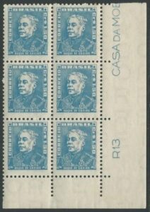 DESCRIÇÃO:** 503 - 1,50 Duque de Caxias - Filigrana P - Bloco de 6 vertical, canto inferior de folha - 1 selo...
